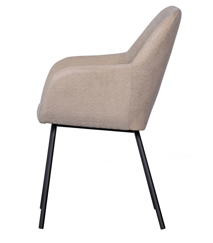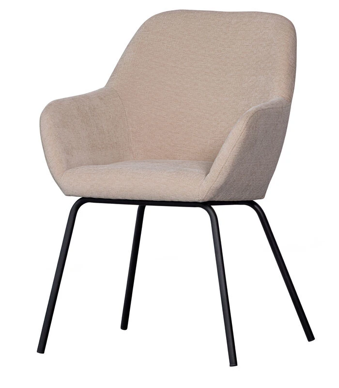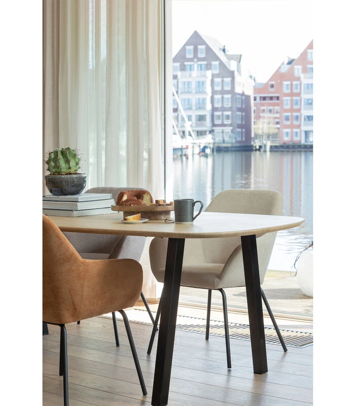 De eetkamerstoel Vos komt uit de collectie van het Nederlandse interieurmerk WOOOD en onderscheidt zich door de lichtglanzende, zachte bekleding. De geweven stof bevat zachte chenille draad wat zorgt voor een chique uitstraling en een zeer comfortabele grip. De armleuningen van de Vos eetkamerstoelen bieden een geborgen zit en zorgen voor urenlang tafelplezier.