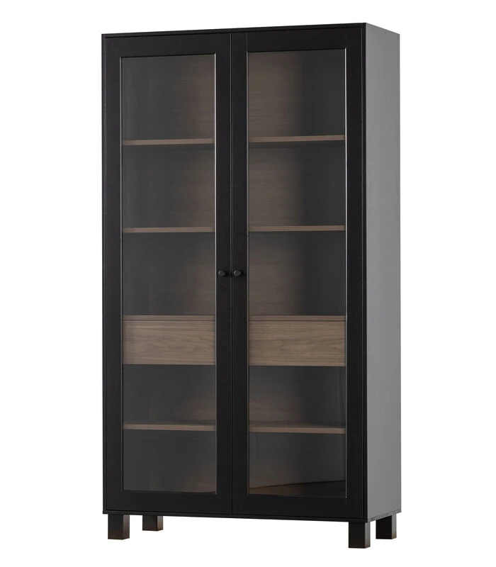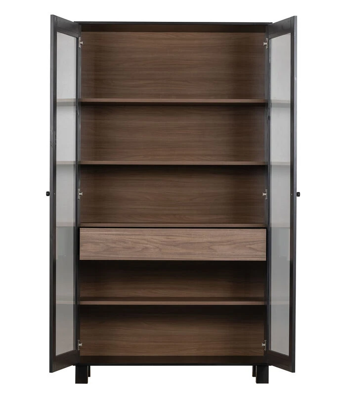 De Goos 2–deurs vitrinekast is een stoere eyecatcher in ieder interieur. De royale vitrinekast is een item uit de collectie van het Nederlandse merk WOOOD. Goos is vervaardigd uit grenenhout met een matzwarte buitenzijde. De warmgekleurde binnenzijde van walnootfineer zorgt voor een unieke twist aan het design.