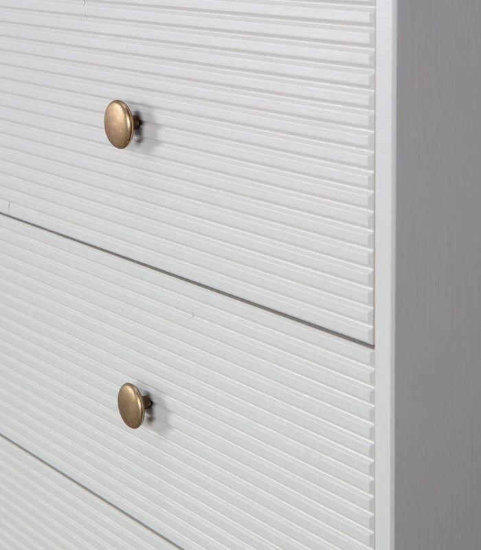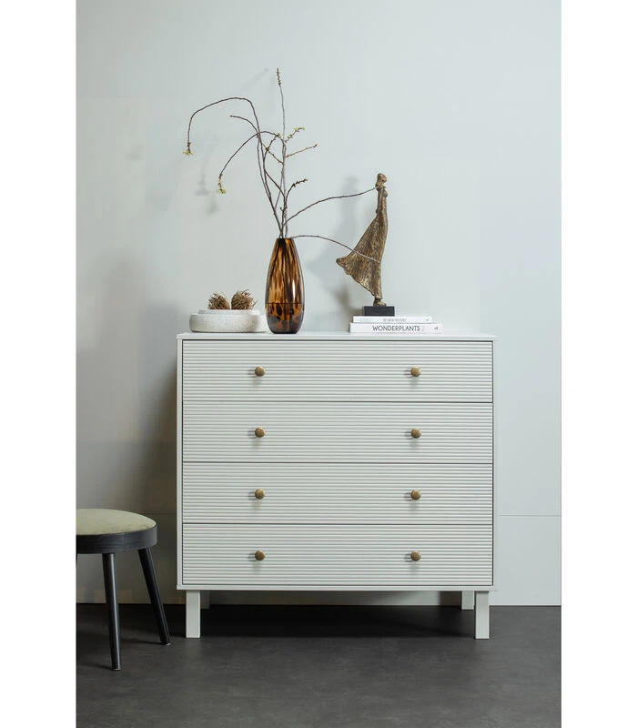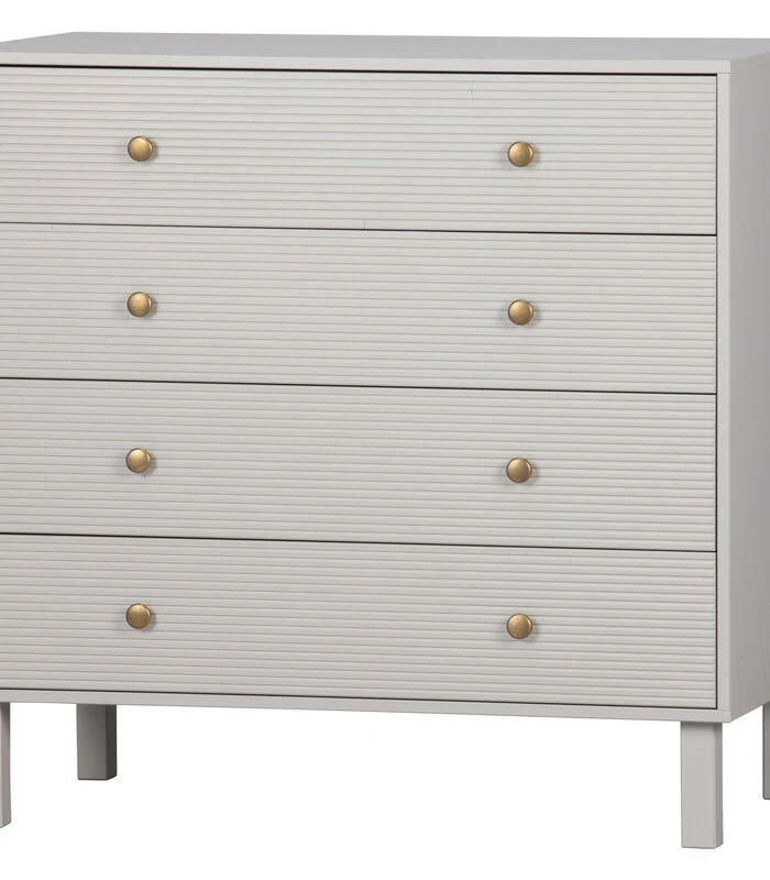 Madu is voorzien van vier royale laden met goudkleurige knopjes. De inhoud van de laden hebben een breedte van 86 cm en een diepte van 38 cm.