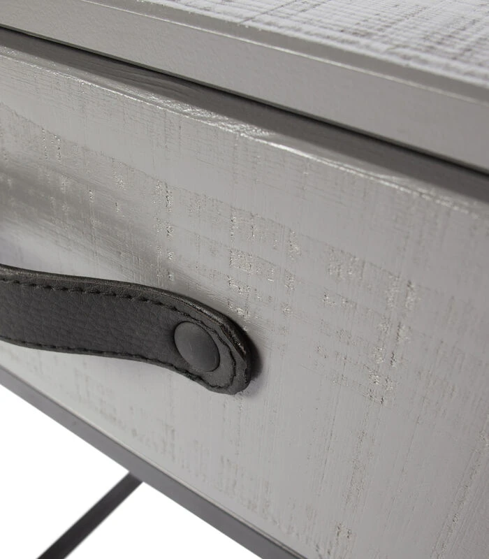 Slank en stoer noemen we nachtkast Morris afkomstig uit de collectie van het Nederlandse merk WOOOD. Deze massief, FSC gecertificeerd, grenenhouten nachtkast heeft een rustieke afwerking, is gespoten in de kleur leem en de lade (hxbxd) 9x29x28 cm is voorzien van een zwart leren handgreep. Het frame is 35 cm hoog en is gemaakt van zwart afgelakt metaal.