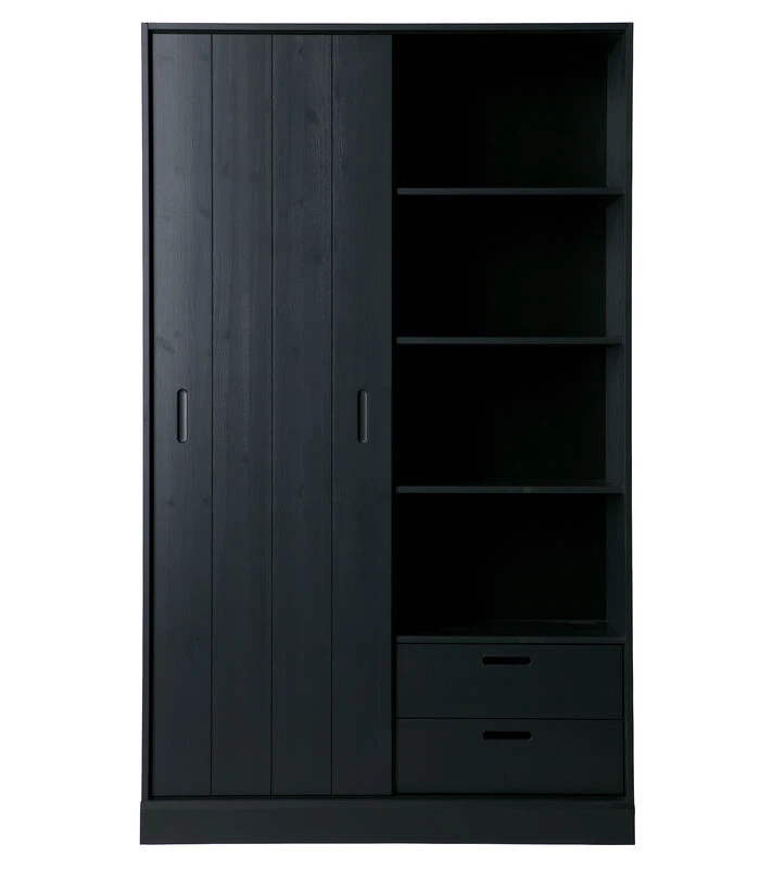 WOOOD Move Schuifdeurkast – Grenen – Zwart – 200x120x42