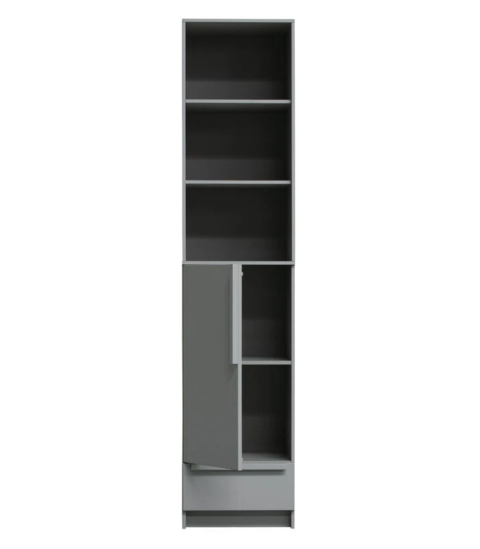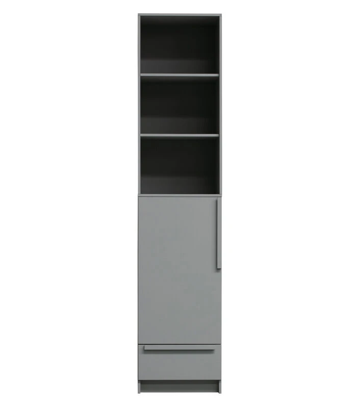Deze royale, strakke en elegante 1–deurs legkast Pure van het merk WOOOD is gemaakt van massief FSC gecertificeerd grenen, gelakt in een moderne betongrijze kleur en heeft een geschuurde afwerking. De Pure kast (215x48x60) is een 1–deurs legkast en maakt deel uit van de splitdeur serie. De bovenzijde van de kast bestaat uit drie open vakken van 32,5 cm hoog. De onderzijde van de kast heeft een deur voorzien van softclose systeem met een robuuste greep waarachter zich nog twee vakken bevinden van 41 cm hoog. Onderaan de Pure kast bevindt zich nog een lade, voorzien van softclose systeem, waar je spullen in kunt opbergen die onttrokken worden aan het oog.