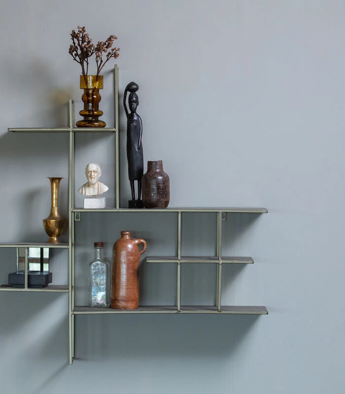 Met deze wandkast Zach uit de collectie van het Nederlandse WOOOD heb je een chique item aan de wand met een speels effect. Wandkast Zach is gemaakt van een antique grey gelakt stalen buisframe en heeft 6 legplanken in verschillende groottes, allemaal met een dikte van 1 cm. Bekijk de afmetingen van deze plankjes op de foto’s. Plaats in de wandkast je mooiste schatten en je hebt een uniek decoratie item in huis.