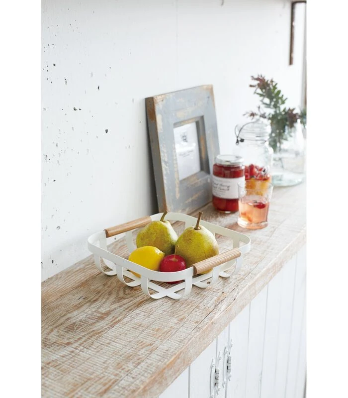 Deze kleine mand van Yamazaki is perfect voor al uw fruit. De mand geeft een retro–look aan de keuken of op tafel. Stijlvol en minimalistisch. Gemaakt van staal en hout en ontworpen in Japan.