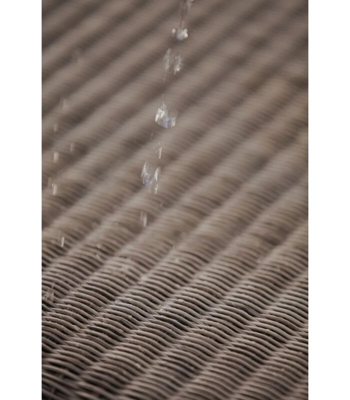 Onderhoudsgemak en totale weerbestendigheid, onze HDPE (hoge dichtheid polyethyleen)resinis gesponnen in een mix van 2 kleur op kleure kleuren om dat mooie, natuurlijk ogende, china–achtige vlechteffect te geven. De structuur is gemaakt van aluminium met poedercoating voor extra duurzaamheid. Hier gaat het om een 3–zits buitenbank in Zénith.Alle afmetingen: hoogte 71 x breedte 188 x diepte 70, zitting 42 cm. Geleverd met kussen in 100% polypropyleen stof, behandeld tegen UV en schimmel. Afdekbare kussens gevuld met polyetherschuim 30 kg/m3 voor de zitting en polyesther vezel voor de rugleuningen. KOK MAISON, rotanspecialist sinds 1920, biedt kwaliteitsmeubelen, comfortabel en bestendig, niet alleen door de keuze van de materialen maar ook door de zorgvuldigheid waarmee elk detail van onze stukken wordt behandeld. Maakwijze: Ondeugdelijk: Std./pOmbouw: Structuur in behandeld aluminium. Weven in hoge dichtheid polyethyleen Kunstvezel. Kussen: 30 kg/m3 polyurethaanschuim bedekt met polyesterwatten voor de zitting, polyestervezel voor de rugleuningen. Stof : 100% polypropyleen.
