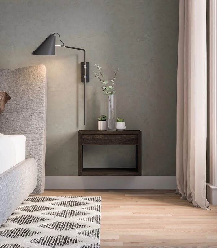 Het nachtkastje is gemaakt van massief berkenhout met een zwarte afwerking. Met een strakke, minimale stijl toont het de schoonheid van de natuurlijke nerf van het hout. Het heeft een handige lade en een plank voor het opbergen van uw favoriete boeken. Compact en functioneel het kan ook aan de muur worden gemonteerd en gebruikt als zwevende plank / lade niet alleen in de slaapkamer, maar ook rond het huis. Dit product is gemaakt van natuurlijk massief berkenhout, elk stuk is uniek qua kleur, natuurlijke kenmerken, nerfpatronen en afwerking. Het is dus mogelijk dat u enkele verschillen tussen artikelen van eenzelfde productlijn ziet; dit is onderdeel van de natuurlijke schoonheid van onze producten. Voor het binnenmateriaal van het product kunnen andere soorten hardhout worden gebruikt.